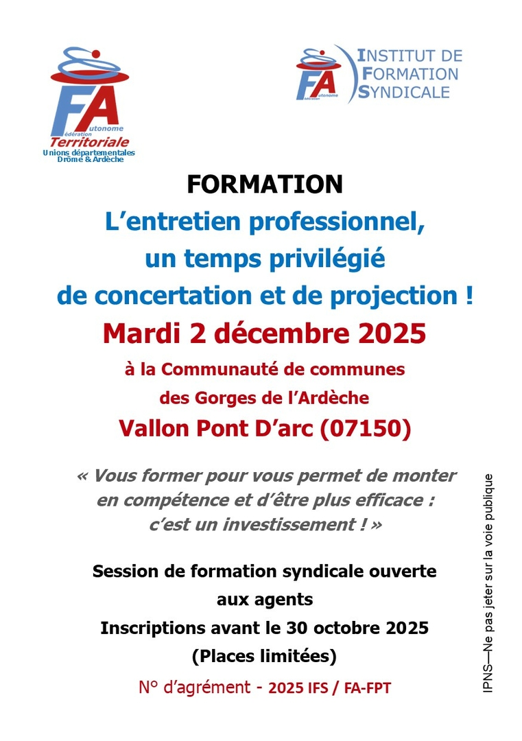 Cloture des inscriptions au titre de la formation syndicale le 28 octobre.